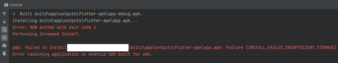 adb: failed to install ...\build\app\outputs\flutter-apk\app.apk: Failure [INSTALL_FAILED_INSUFFICIENT_STORAGE]