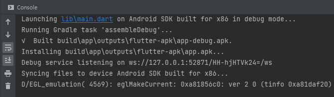 콘솔 창에도 오류는 발생하지 않고, 애뮬레이터에 앱도 정상적으로 구동되었습니다.